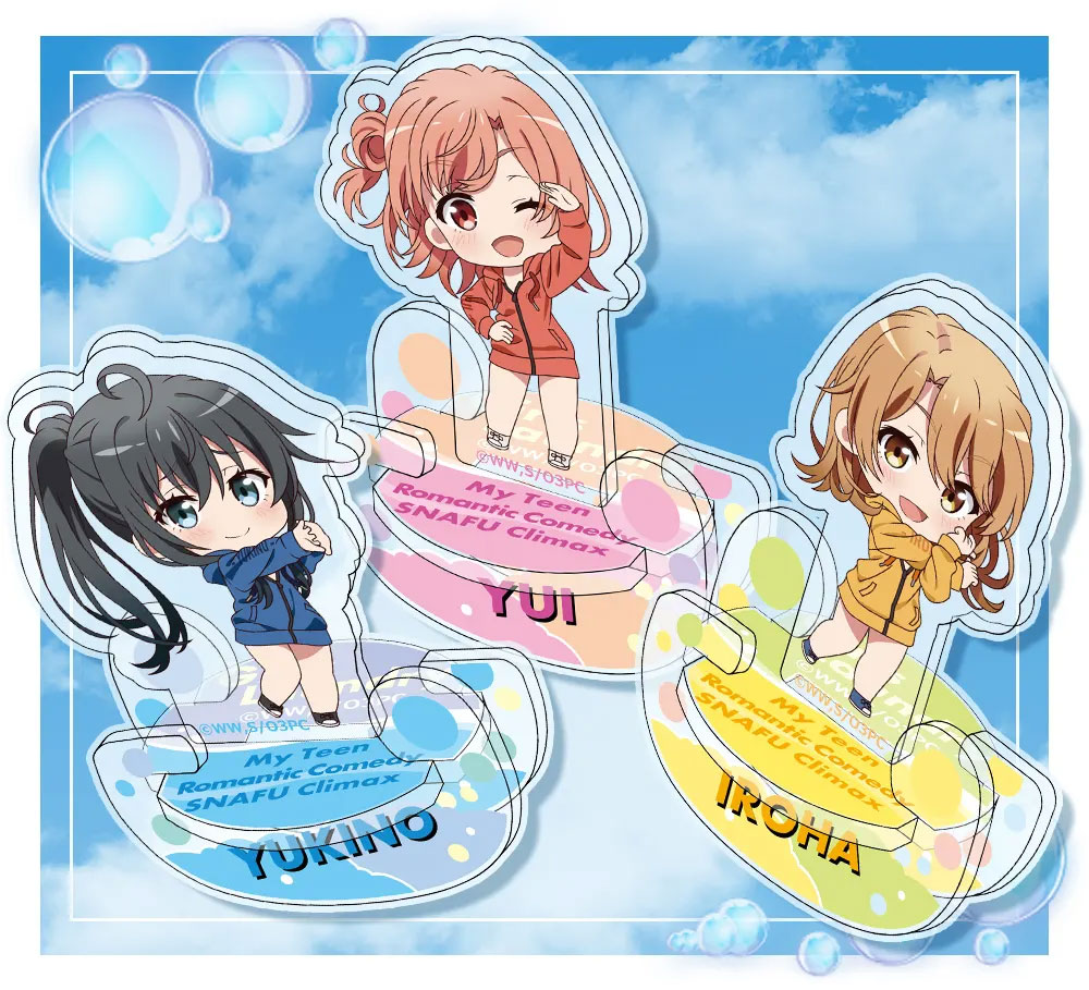 La apertura de esta tienda POP UP SHOP comenzará a partir del próximo 26 de abril de este año y contará con un stock limitado de la mercancía. Además, en el sitio web de la compañía University COOP, se han presentado a los encantadores productos que estarán inspirados en las heroínas principales del anime Oregairu. Los productos son los siguientes: