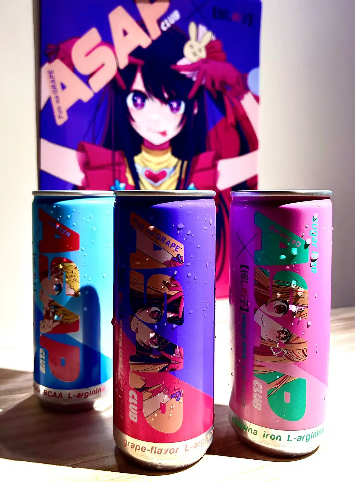 Desde uno de los mejores animes de estos años, Oshi no ko, se presenta en esta nueva colaboración con «ASAP Club» en forma de bebida energética con aspecto referente a personajes de la serie, un refrescante añadido para los amantes de la franquicia de este mundo de idols y música que tanto ha enamorado al público con sus canciones, trama, personajes y su diseño.