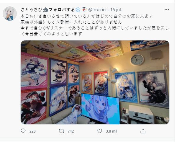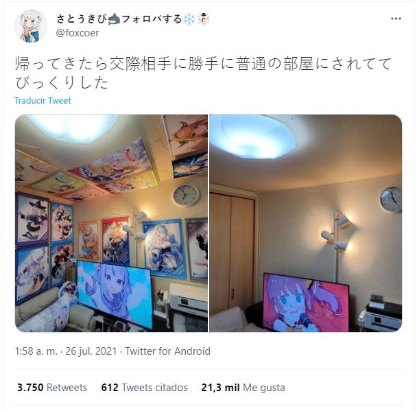 El usuario en Twitter volviรณ a comentar unas despuรฉs sobre la situaciรณn de mostrarle a su pareja que es un amante de las vtuber. Sorpresivamente, pareciera que la relaciona con su pareja continuรณ pero su cuarto no corriรณ con la misma suerte.