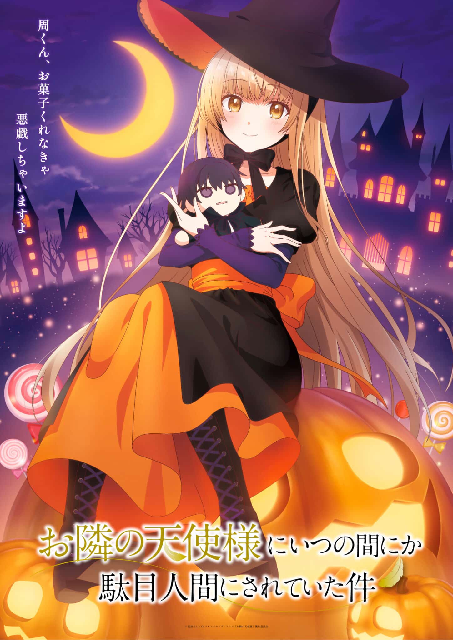 Los medios oficiales para la adaptación al anime de la novela ligera «Otonari no Tenshi-sama ni Itsunomanika Dame Ningen ni Sareteita Ken» (The Angel Next Door Spoils Me Rotten) han publicado una encantadora imagen visual protagonizada por el personaje Mahiru Shiina en conmemoración a la llegada de la fecha especial Halloween. En dicha imagen visual, podremos apreciar a Mahiru vistiendo un atractivo traje de bruja mientras sujeta un peluche de Amane Fujimiya y se encuentra dentro de un entorno muy pintoresco que hace referencia a Halloween.