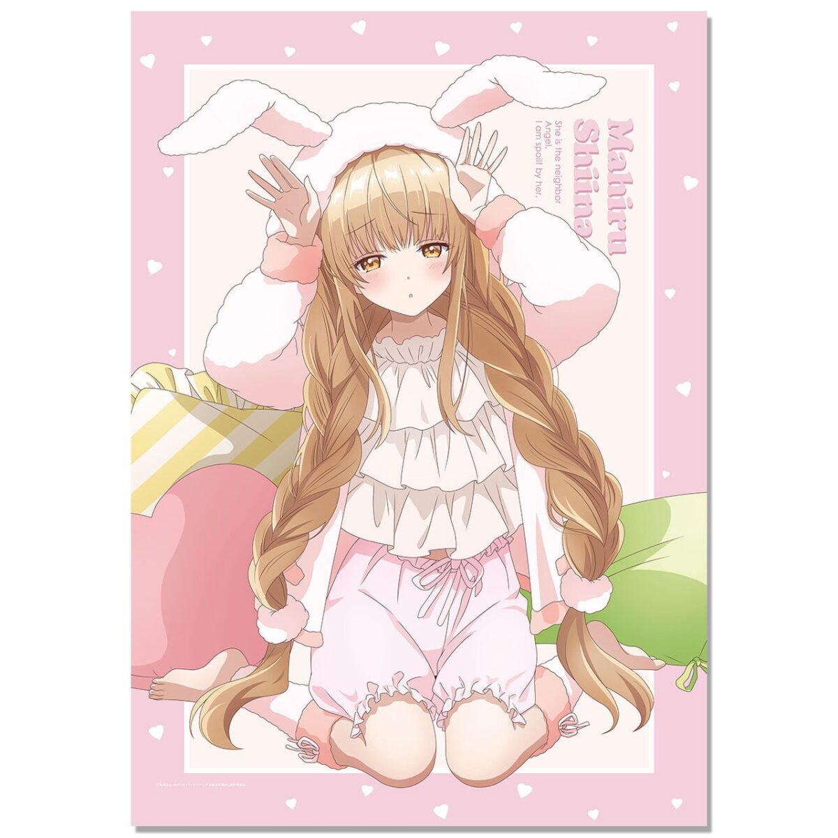 El primero titulado «Shiina Mahiru (Loungewear)» con un atuendo relajado posando sobre una almohada vistiendo tonos azules, blancos y marrones, el segundo titulado «Shiina Mahiru (Sudadera con capucha y orejas de conejo en loungewear)» con un atuendo más interesante vistiendo un abrigo de tipo conejita con tonos rosa pastel y una expresión que refleja lo más tierno de la protagonista como se mostró a lo largo de la serie y que los fans estarán más que complacidos al adquirir estos nuevos soportes.