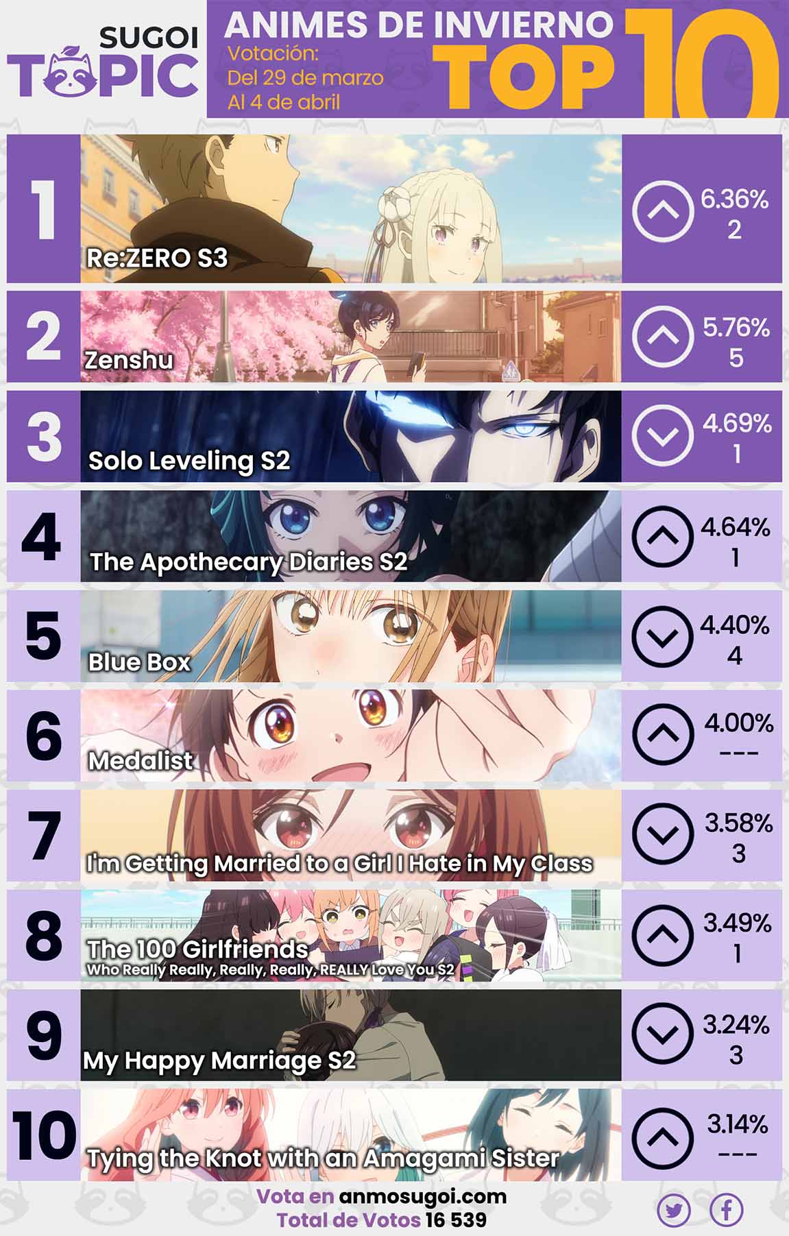 Además, te recomendamos seguir a Sugoi Topic en Facebook y Twitter para estar al pendiente de los nuevos estrenos y las publicaciones de nuestras votaciones.