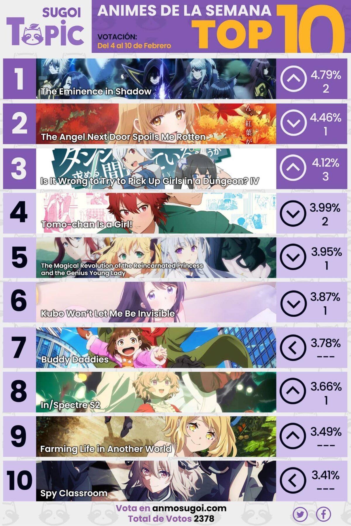 Además, te recomendamos seguir a Sugoi Topic en Facebook y Twitter para estar al pendiente de los nuevos estrenos y las publicaciones de nuestras votaciones.