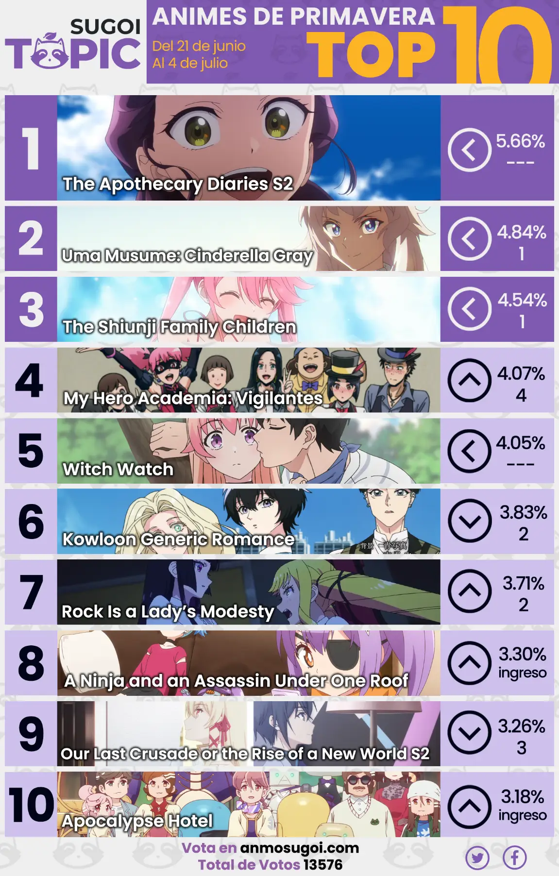 Además, te recomendamos seguir a Sugoi Topic en Facebook y Twitter para estar al pendiente de los nuevos estrenos y las publicaciones de nuestras votaciones.