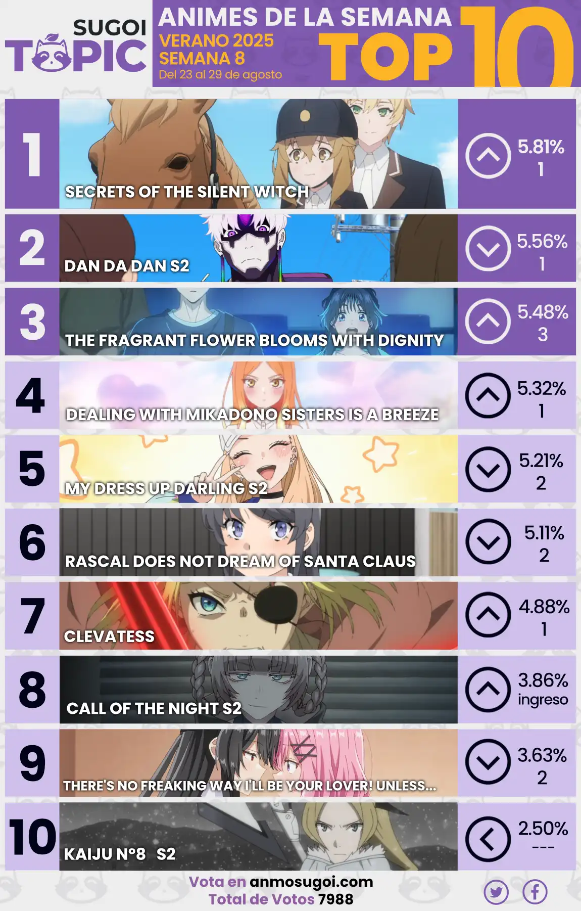 Además, te recomendamos seguir a Sugoi Topic en Facebook y Twitter para estar al pendiente de los nuevos estrenos y las publicaciones de nuestras votaciones.