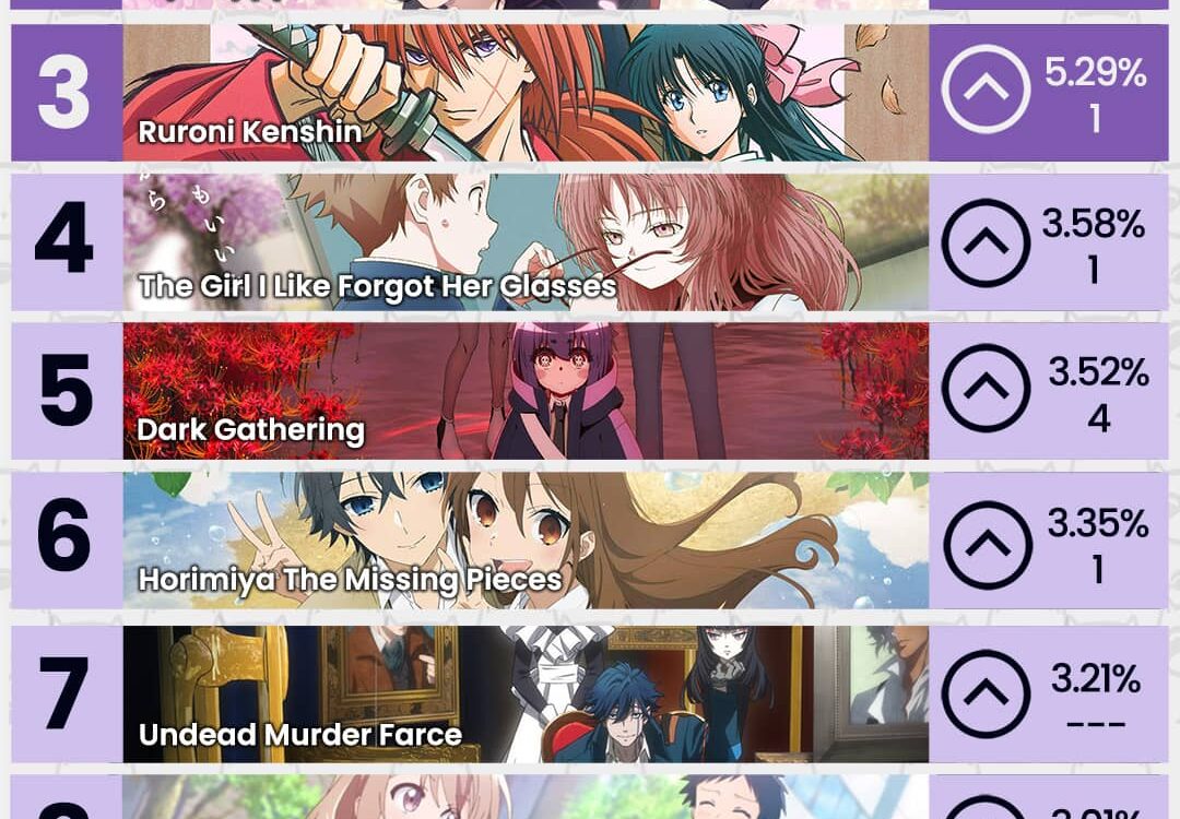 Los animes Mushoku Tensei S2, My Happy Marriage y Ruroni Kenshin se ubican en el podio esta semana.