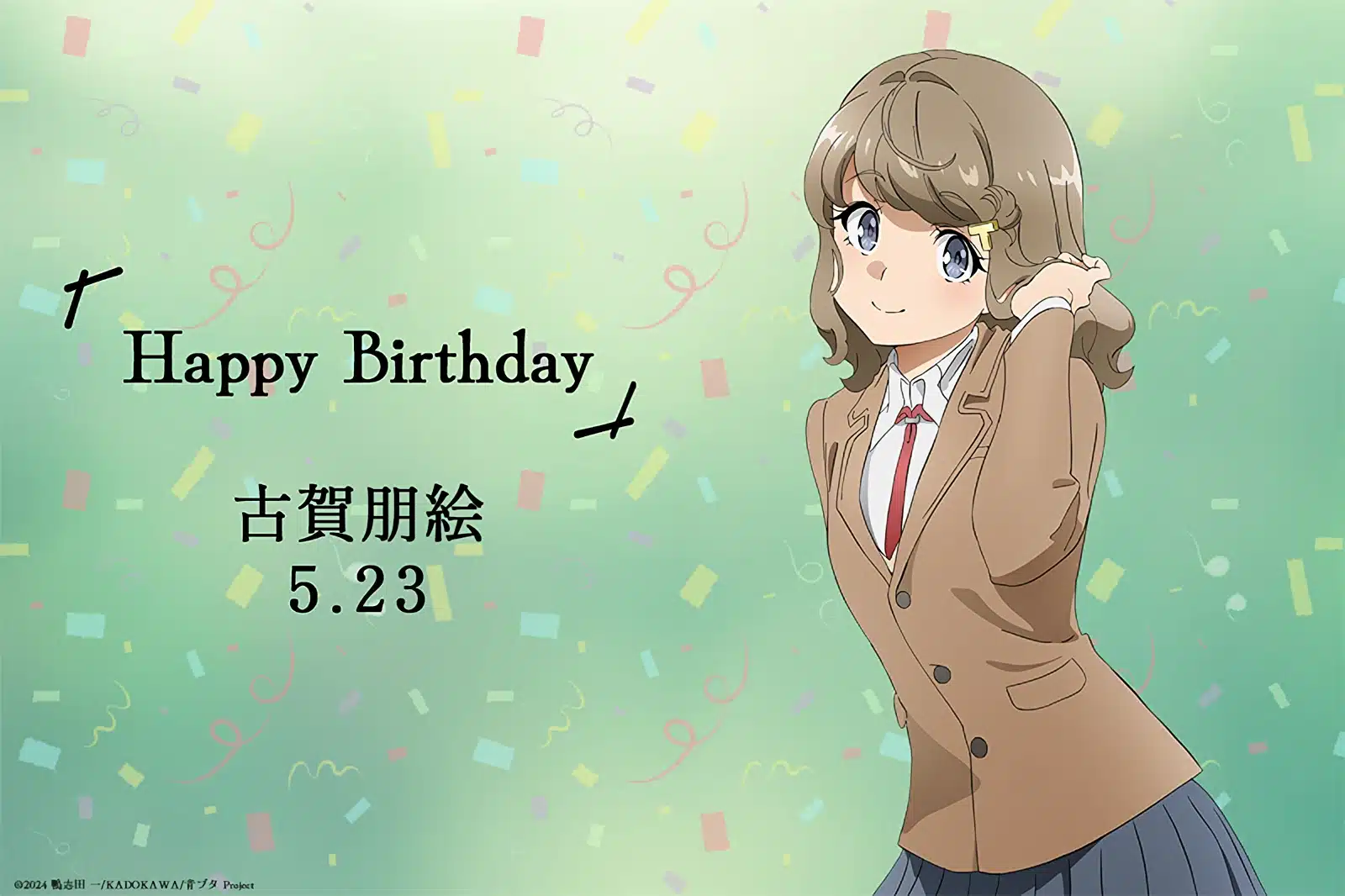 Esta ilustración tiene como objetivo conmemorar el cumpleaños del personaje Tomoe Koga, el cual se celebra este 23 de mayo. Por lo tanto, el comité de producción del anime le ha dedicado una publicación especial por esta fecha especial. Algo a destacar es que la visual presenta la versión de Tomoe Koga que veremos en el anime Rascal does not Dream of Santa Claus.