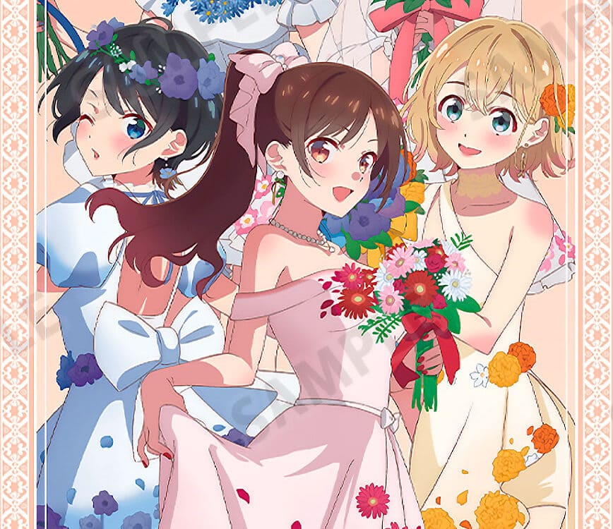 Adicionalmente, se ha publicado una imagen promocional para esta colaboración, en donde podremos ver a las heroínas de Rent-a-Girlfriend lucir unos hermosos vestidos para la ocasión.