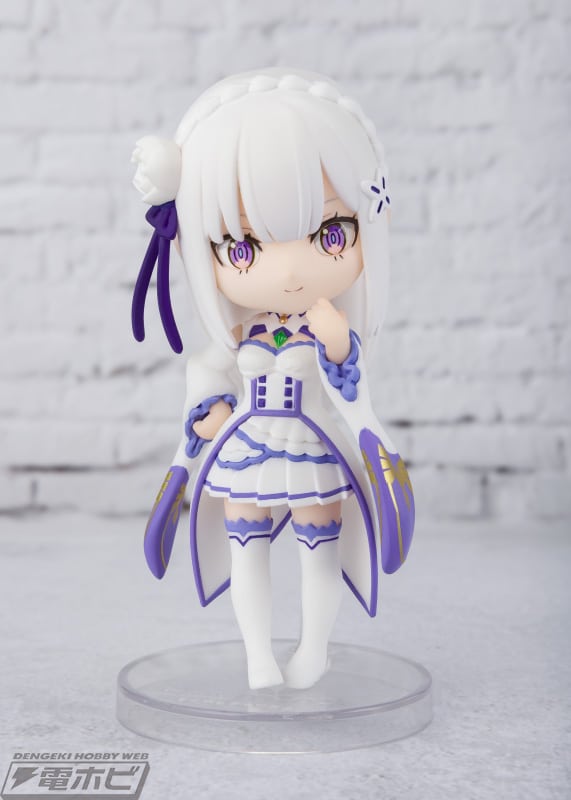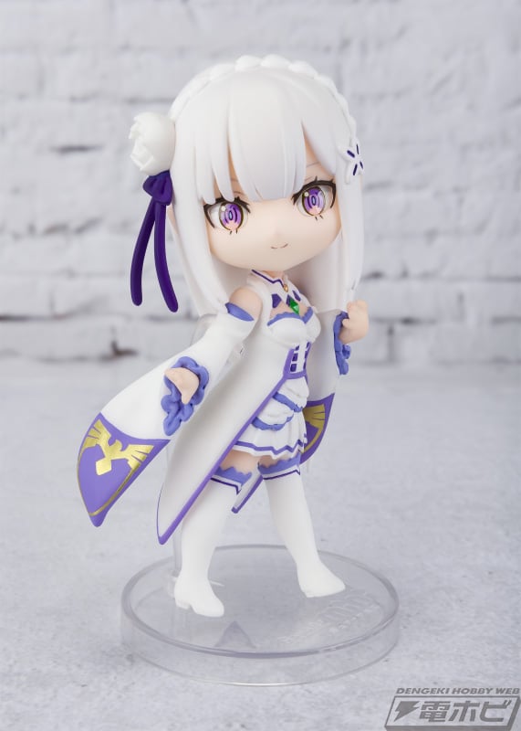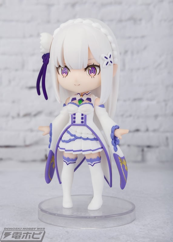 La figura de Emilia tiene una altura de 90 mm, está disponible en preventa con un precio de 2,420 yenes y una fecha de lanzamiento programada para marzo de 2021.