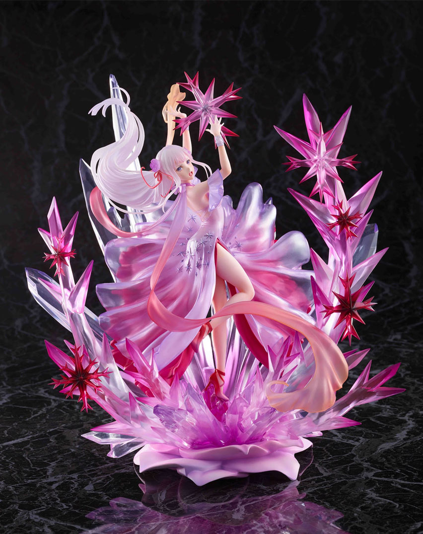 A través del sitio web oficial de la compañía eStream, se ha presentado una figura a escala 1/7 inspirada en Emilia, protagonista de la franquicia Re:Zero. El producto pertenece a la división de figuras SHIBUYA SCRAMBLE FIGURE y saldrá a la venta en el mes de abril del 2022.