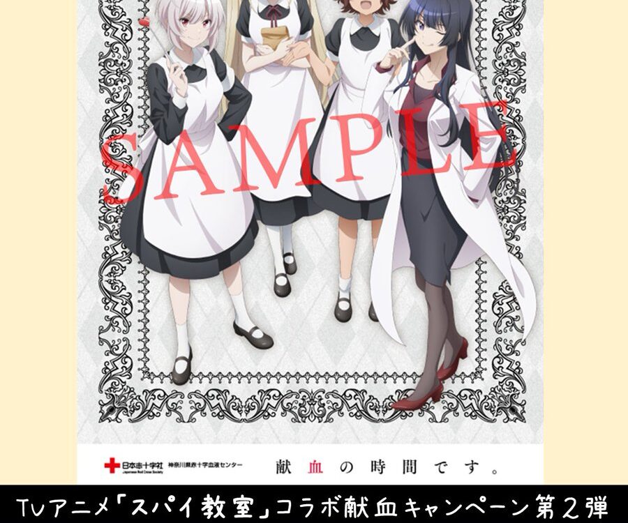 La serie de anime basada en la novela ligera «Spy Classroom» (Spy Kyoushitsu) anunció al público una colaboración con el Centro de Sangre de la Cruz Roja de Kanagawa para una campaña de donación de sangre que busca atraer a los otakus de buen corazón para disfrutar de su anime favorito y a la vez contribuir con una buna causa.