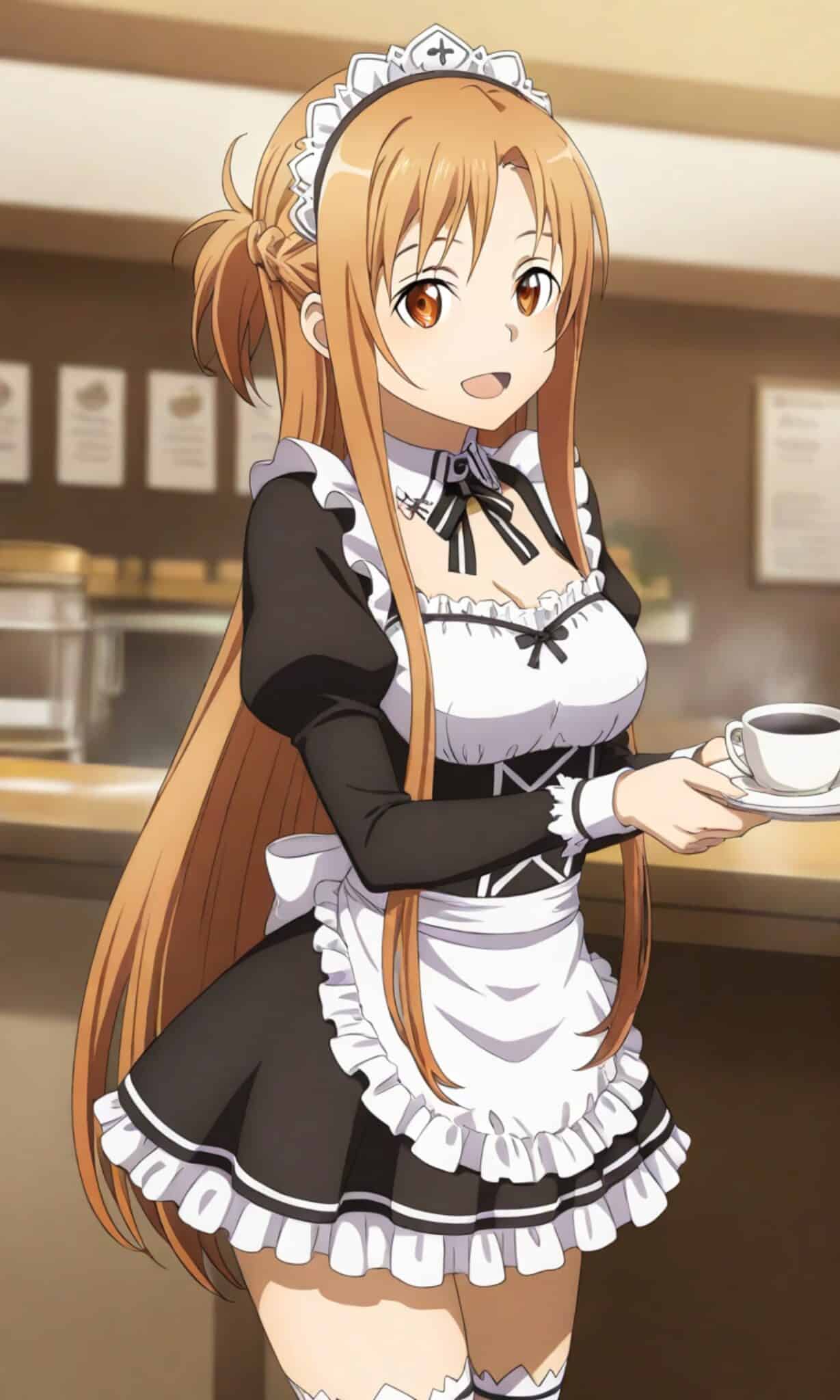 La comunidad de Sword Art Online es una de las más activas que nos podemos encontrar en las redes. Y es que dentro de esta podemos ver artistas de todo tipo, con cosplays o ilustraciones muy variadas. Pero ahora llegan una serie de trabajos que unen estos dos mundos. En primer lugar, porque se tratan de ilustraciones que tienen de protagonista a la querida Asuna Yuuki, una de las chicas más populares de la serie. Y en segundo, porque a ella la vemos realizando un cosplay nunca antes visto, en este caso como una linda maid de cafetería.