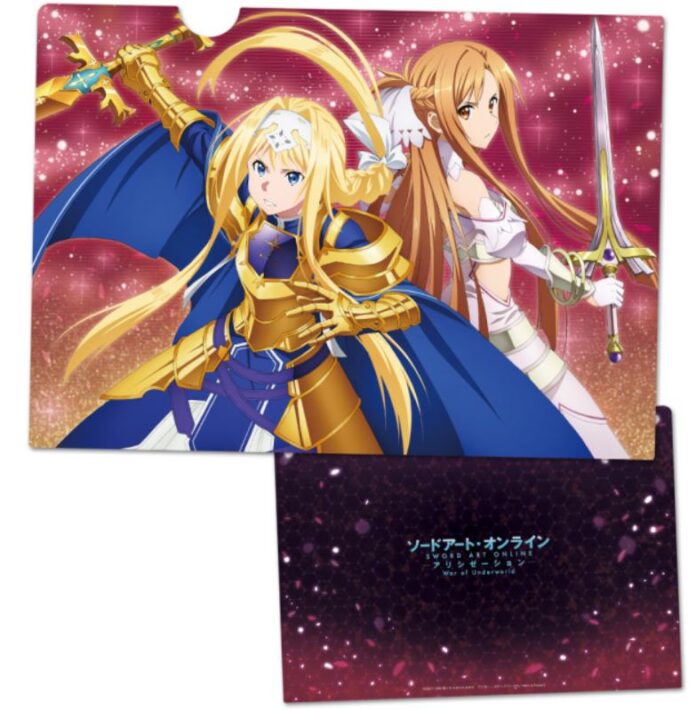 Todas las carpetas tienen un precio de 440 yenes y nos muestra a las protagonistas Alice y Asuna vistiendo diferentes vestimentas, incluyendo una portada en la que apreciamos a Alice en kimono.