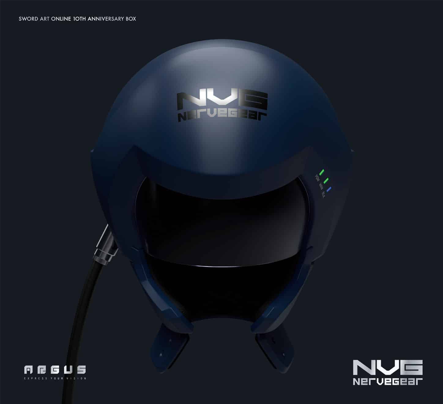 Pero eso no es todo, ya que este volumen Blu-Ray BOX, titulado Sword Art Online 10th Anniversary BOX, vendrá incluido una genial replica del «NerveGear», el famoso casco de realidad virtual que causó el comienzo de todo lo visto en la historia de la franquicia.