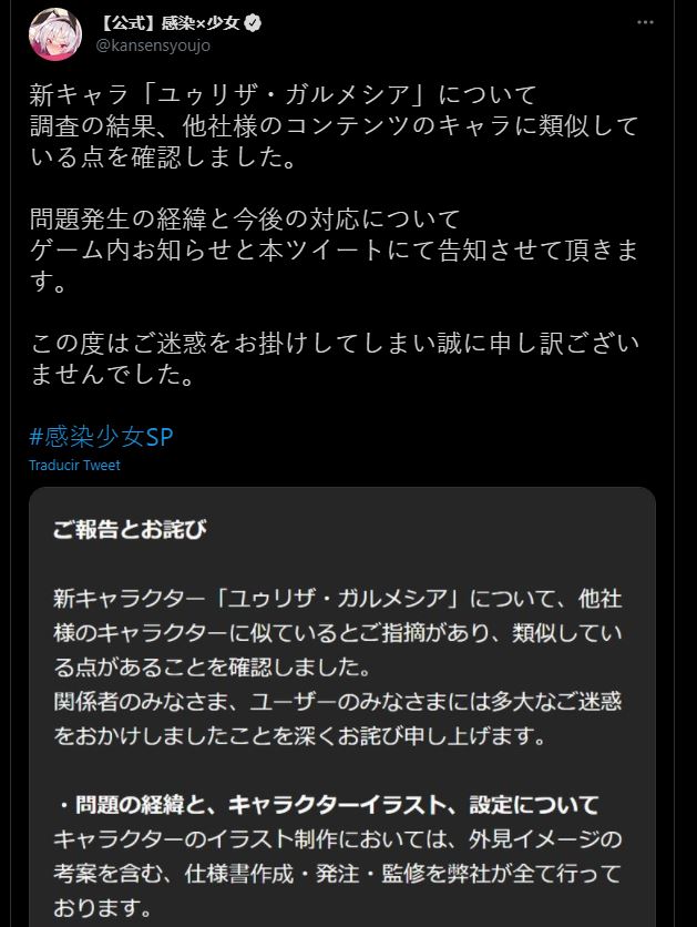 En las últimas horas se ha desató una controservia que gira entorno al videojuego para smartphone Kansen x Shoujo que agregó un nuevo personaje llamado Yuuriza Garumeshia que guardaba una gran similitud con la protagonista del videojuego Tales of Berseria, Velvet.