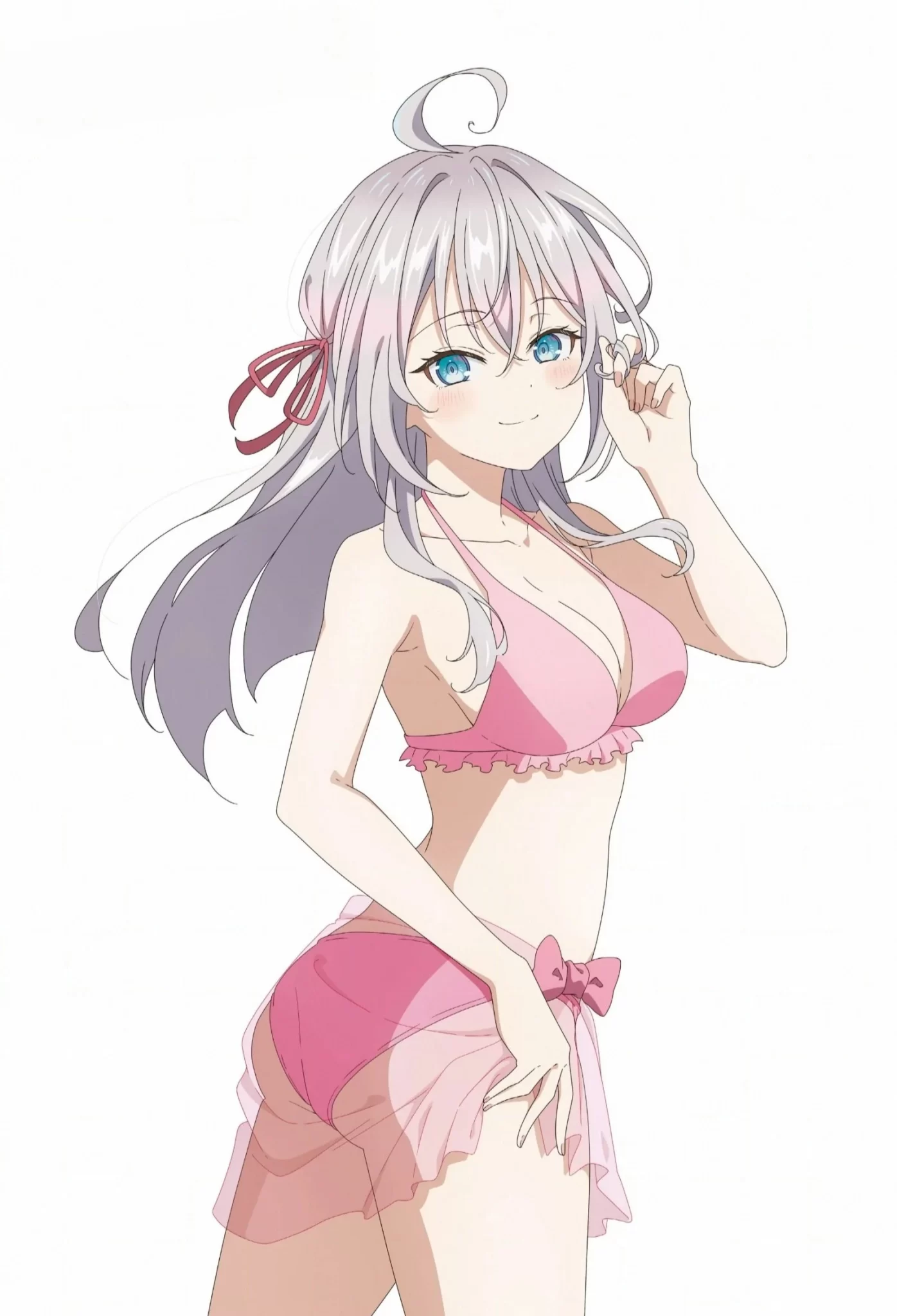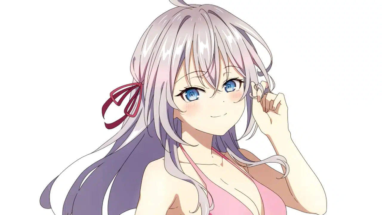 La hermosa albina Alisa Mikhailovna Kujou del anime Tokidoki Bosotto Roshia-go de Dereru Tonari no Arya-san (Alya Sometimes Hides Her Feelings in Russian) nos deslumbra con una vestimenta veraniega, disfrutando del verano.