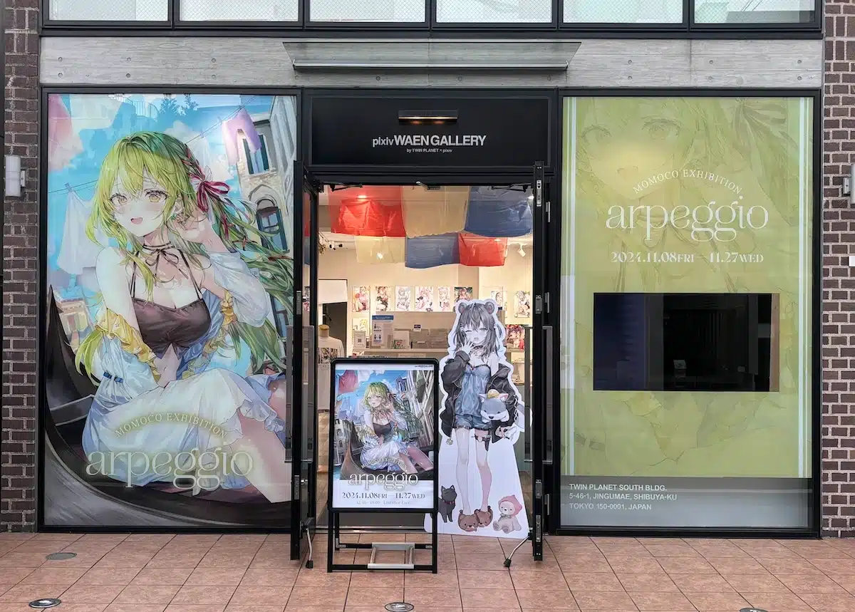 La entrevista también abordó su exposición individual arpeggio, que estuvo abierta al público hasta el día 27 de noviembre de 2024 en Omotesando, Tokio. En esta se incluyó obras de su reciente libro de arte arpeggio (Genkosha), lanzado el 18 de noviembre, junto con ilustraciones de la serie Tokidoki Bosotto Russia-Go de Dereru Tonari no Alya-san, inspirada en los paisajes de Venecia, Momoco comentó: “Siempre he querido capturar la atmósfera única de la ciudad. Aunque aún no he ido, espero visitarla pronto”.
