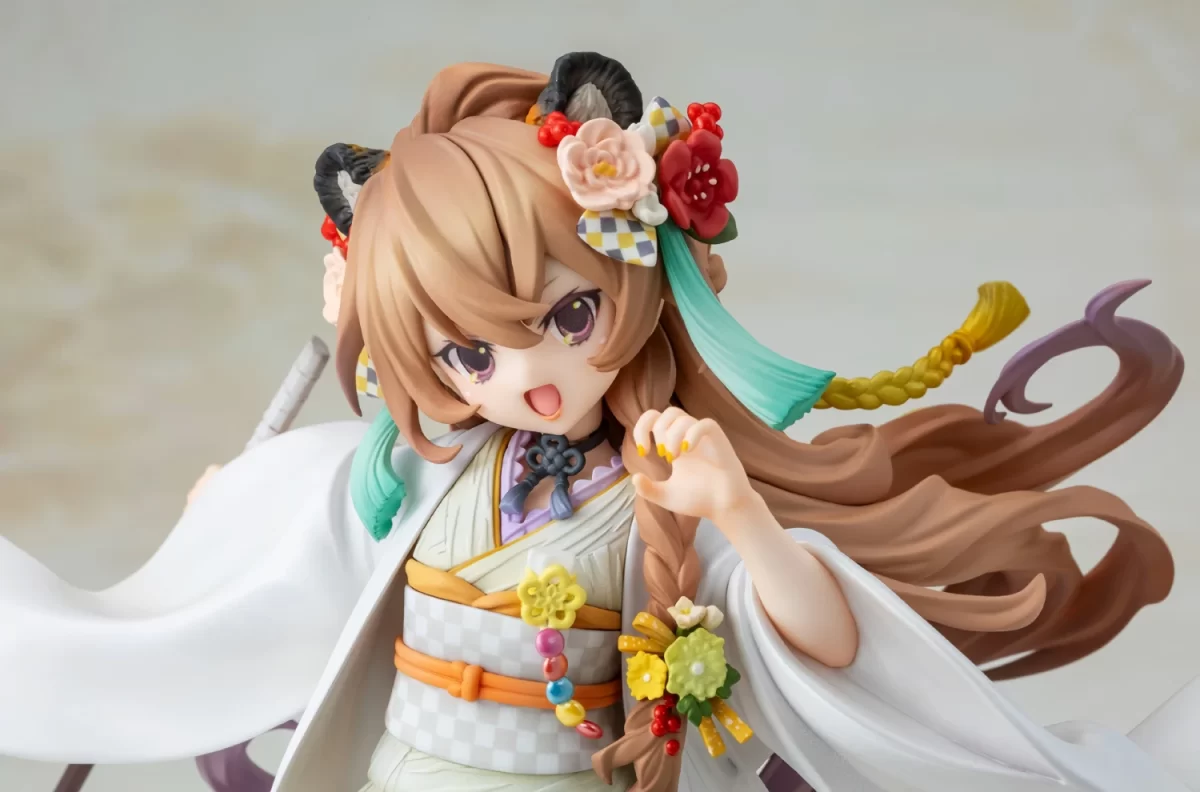 Además del elegante traje blanco, los adornos para el cabello y el modelado del kimono resaltan el volumen y la sensación de dinamismo típico de Taiga, convirtiendo este artículo en un objeto codiciado por los fanáticos. ¡Viene con piezas de sombrero de algodón extraíbles!