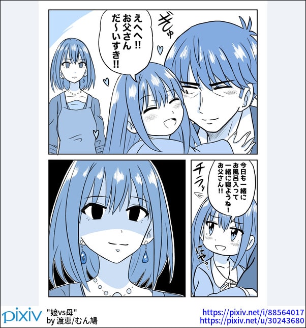 Todo comenzó cuando el ilustrador Shibu Mun, quien tiene mucho cariño a la franquicia Idolmaster, publicó un comic web titulado ”Mãe VS Filha» que tiene como temática ver como madre e hija compiten por la atención del hombre de la casa, en pocas palabras el padre/esposo.