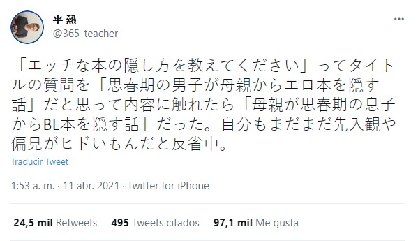 En esta ocasión tenemos un caso un tanto curioso que le ocurrió a un maestro de una escuela especial en japón. Al parecer un alumno le entregó un ensayo un tanto peculiar sobre «¿Cómo esconder un libro erótico?». ¿Lo peculiar de esto? Quien intentaba esconderlo era la madre del chico puesto que se trataba de un libro yaoi.
