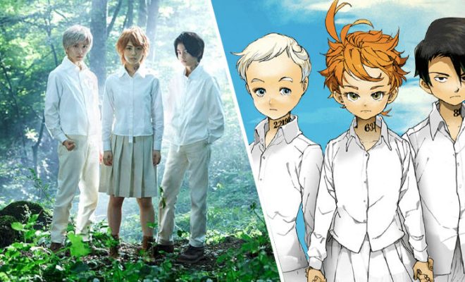 Emma, Norman Y Ray son tres huérfanos de 11 años que viven en un orfanato desde el cual es imposible ver el mundo exterior, ya que hay un muro que lo impide, y además hay un bosque al que está prohibido acercarse. Un día, una niña del orfanato llamada Conny es adoptada, sin embargo se olvida de su peluche, por lo que Emma y Norman van a buscarla para darle el peluche, adentrándose en la zona prohibida. Allí descubren el cuerpo sin vida de Conny, además de unos seres que parecen demonios, por lo que aterrorizados se esconden.