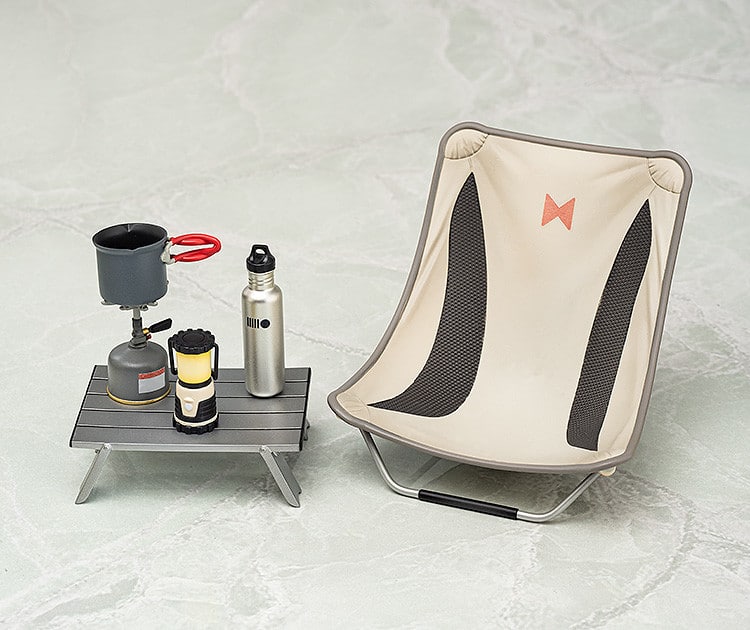 La figura nos presenta a Rin tal como se le vio en el primer capítulo de la primera temporada, utilizando un poncho mientras disfruta de una bebida caliente y realiza una lectura ligera. Está hecha de plástico PVC y ABS de alta calidad. La figura cuenta con varios objetos que incluyen su kit de preparación de alimentos, una mesa baja y su silla para acampar.