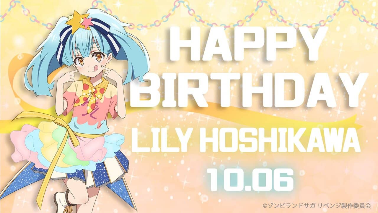 La cuenta oficial de Twitter del anime Zombie Land Saga conmemoró el cumpleaños de Hoshikawa Lily, el 6 de octubre, con una ilustración especial.