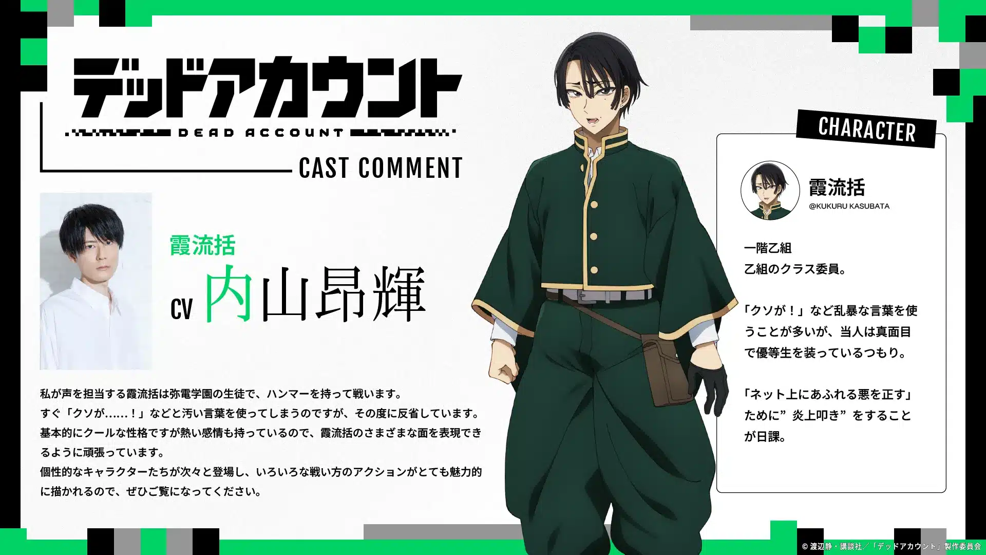 Además, se anunció al público la apertura de un sitio web oficial para la adaptación al anime del manga Dead Account, donde se presentaron los primeros integrantes del elenco de voz: