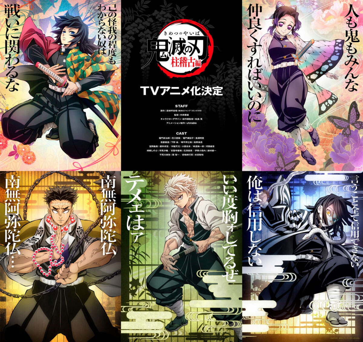 Cabe destacar que tanto el vídeo teaser como la imagen teaser presentada en los medios oficiales del anime, presentan a los personajes Giyuu Tomioka (Pilar del Agua), Shinobu Kocho (Pilar del Insecto), Gyomei Himejima (Pilar de la Roca), Sanemi Shinazugawa (Pilar del Viento) y Obanai Iguro (Pilar de la Serpiente).