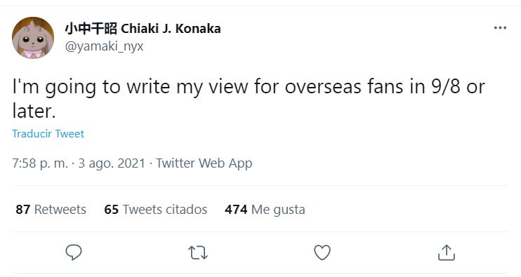 Voy a escribir mi punto de vista para los fans en el extranjero el 8 de septiembre o más tarde.