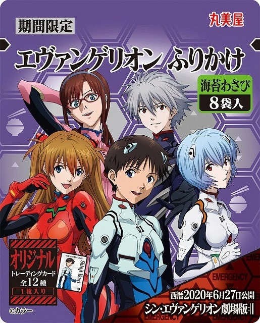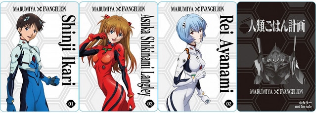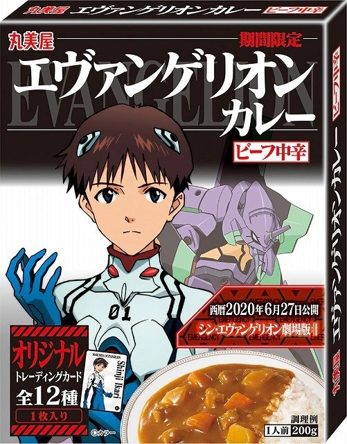 Se lanzarán a la venta currys y helados con temática del anime antes del estreno oficial en Japón de la película Evangelion: 3.0 + 1.0, programado para estrenarse el 27 de junio. Marumiya lanzará el curry Shinji y dos tipos de guarniciones japonesas para platos de carne, uno con sabor a wasabi con algas y el otro con sabor a salmón. Cada paquete de productos Marumiya viene con una de las 12 cartas coleccionables de los personajes del anime.
