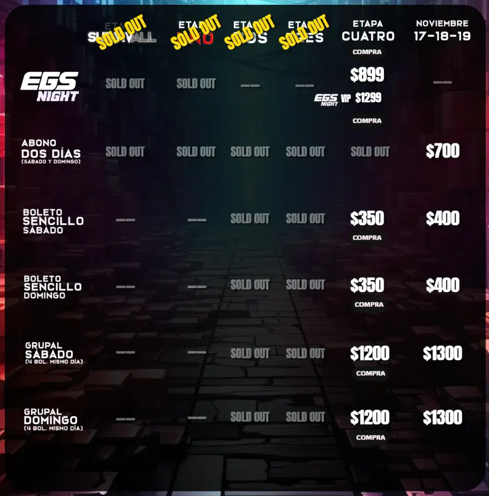 Por supuesto, no será todo lo que habrá por parte de Dos Equis, ya que los asistentes podrán disfrutar de todo tipo de actividades y torneos desde el 17 de noviembre, en donde las personas podrán disfrutar de una mítica fiesta previa: la EGS Night, la cual es exclusivamente para mayores de edad. Y continuando el 18 y 19 de noviembre habrá varias actividades en donde los participantes podrán sacar el máximo provecho a su Dos Equis-ID y con ella podrán recolectar X-points los cuales servirán para canjear por mercancía oficial en el evento o en el sitio web.