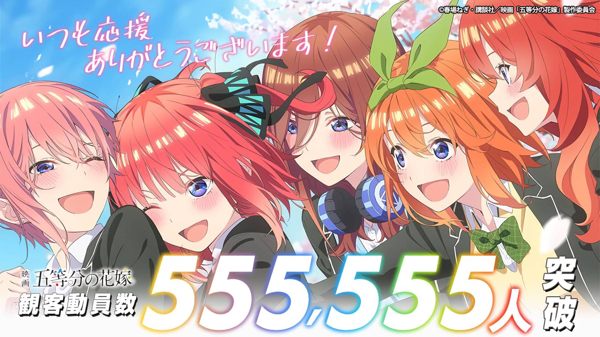 La película «Eiga Go-Toubun no Hanayome» superó los mil millones de yenes recaudados