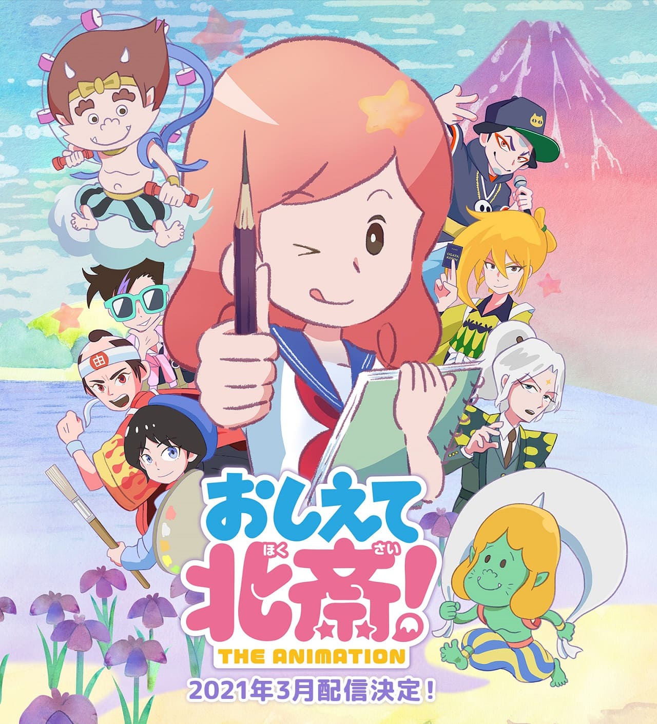 Mediante su sitio web oficial, la adaptación al anime de Oshiete Hokusai! (Teach Me, Hokusai!) reveló el día de hoy un video promocional, En el video se muestra un fragmento del opening, titulado «Tenkorin no Tema«, interpretado por la banda de rock CHAI. En el video también se anuncia que el anime se estrenara el 7 de marzo en Japón.