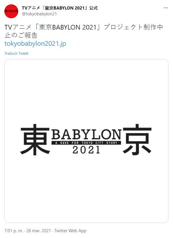 El anuncio menciona que tanto el estudio CLAMP como el comitรฉ de producciรณn estarรกn trabajando arduamente para poder comenzar una nueva producciรณn en el menor tiempo posible. Disculpรกndose con la productora por el mal manejo en la gestiรณn, asรญ como tambiรฉn se disculparon con los fans que estaban esperando con ansias Tokyo BABYLON 2021.