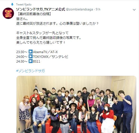 Todo comenzó cuando la cuenta oficial de Twitter del anime ZombieLand Saga publico un ultimo post antes del episodio final.