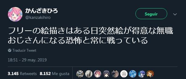 Mediante un tweet, dijo: «Un artista independiente lucha constantemente con el temor de convertirse en una persona desempleada que de repente solo realiza una ilustración por día».