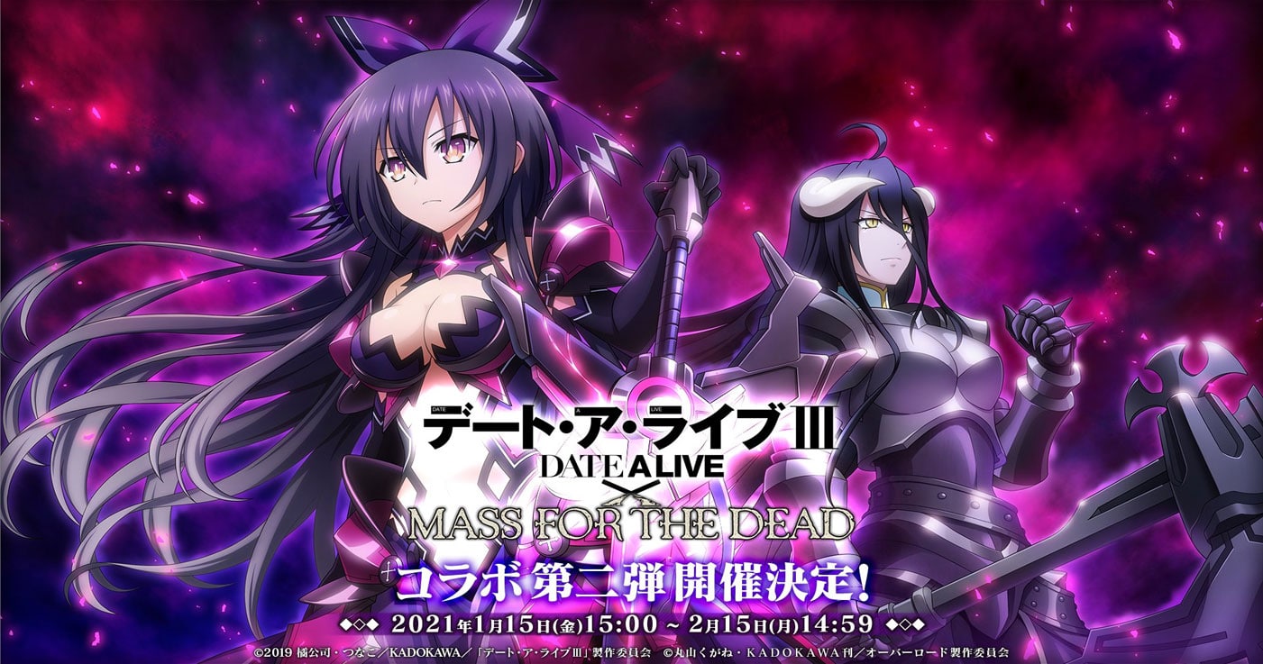 A través de su cuenta de Twitter oficial, el vídeojuego MASS FOR THE DEAD (Titulo oficial de la franquicia de Overlord) ha anunciado que se realizará una colaboración con la franquicia Date a Live.