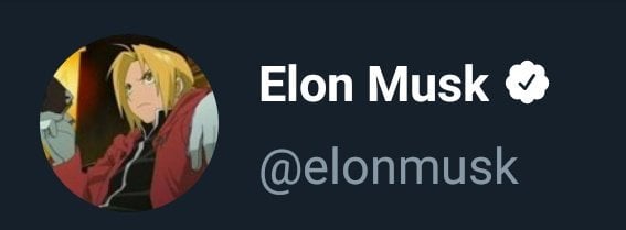La foto de Elon Musk pertenece al personaje Edward Elric del anime Fullmetal Alchemist. Elon Musk es una persona que es vista por la comunidad científica como un prodigio y digno ejemplo a seguir, su motivación por innovar lo ha hecho destacar, logrando grandes avance en la industria aeroespacial.