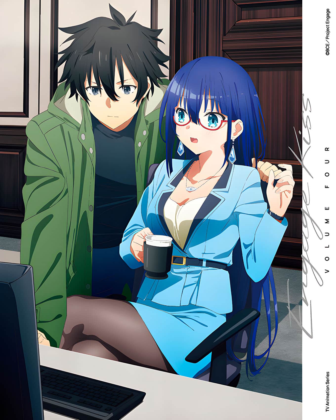 Pero eso no es todo, ya que en el sitio web oficial del anime Engage Kiss también se ha revelado la portada oficial del «Digipak» para el cuarto volumen Blu-Ray/DVD de la serie, el cual es protagonizado por los personajes Shuu Ogata y Ayano Yuugiri, en el que se destaca la «vestimenta habitual de oficinista» de Yuugiri que tanto ha dejado encantados a los fanáticos.