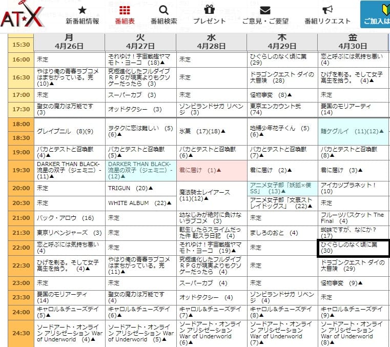 Luego de que los rumores sobre que el nuevo anime de Higurashi no Naku Koro ni tendría un total de 30 episodios circularán en diferentes medios por lo que se mostraba en la grilla de programación del canal AT – X, finalmente, podemos decir que esto ya fue desmentido. El canal AT – X actualizo su grilla de programación, solucionando ese «error» que se presento anteriormente.