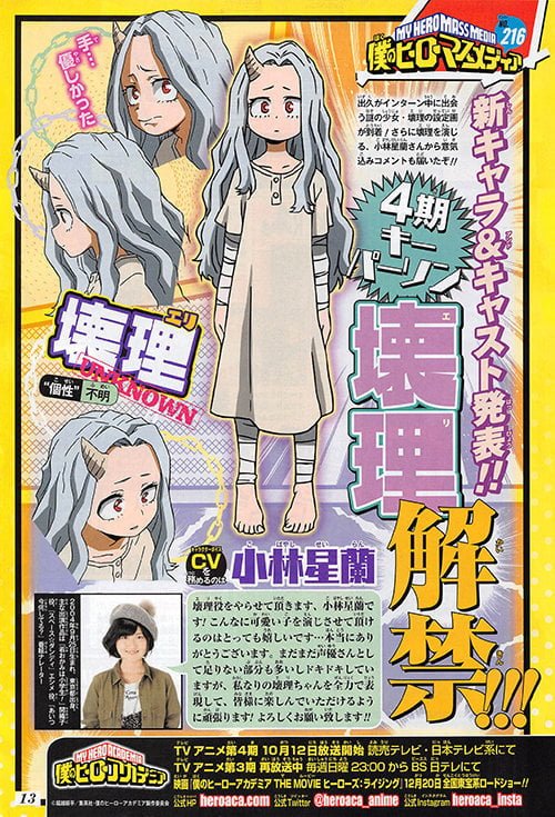 Tambiรฉn se confirmo oficialmente que la seiyuu Seiran Kobayashi se unirรก al elenco de la cuarta temporada e interpretarรก al personaje Eri.