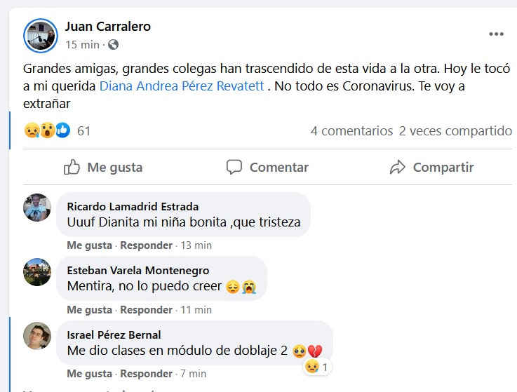 La noticia se dio a conocer a través de la cuenta personal de Facebook del actor de doblaje Juan Carralero quién ha dado la triste noticia a sus seguidores y al mundo del internet.