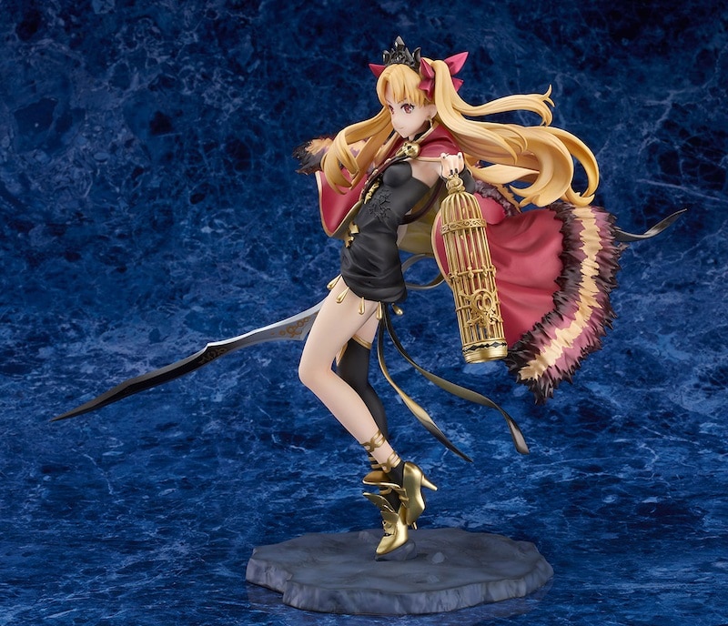 La figura recrea con un gran aprecio al detalle a Ereshkigal, mostrรกndonos al personaje en una posiciรณn llena de dinamismo. Tambiรฉn se resalta la belleza natural y hermosa sonrisa del personaje.