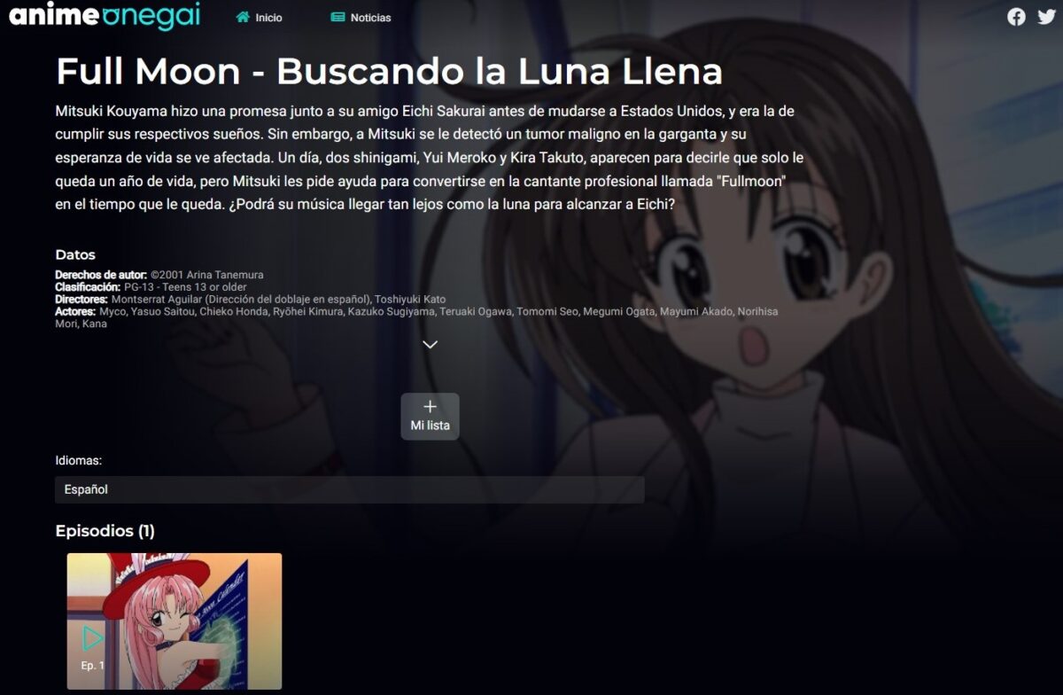 El esperado estreno de Full Moon: Buscando la luna llena por fin ya acabo y es que el anime ya se encuentra en este momento disponible en Anime Onegai con un espectacular doblaje al español latino, que sin duda alguna a muchas personas les gustara y dejara a muchos con muchas emociones encontradas debido a lo conmovedora que es la historia.
