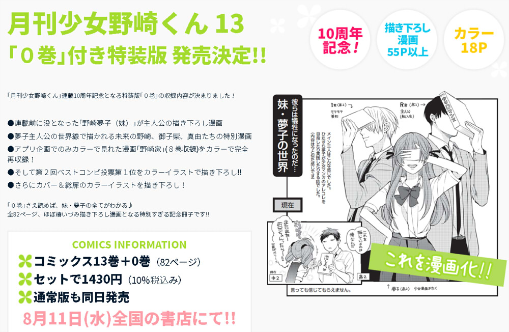 La cuenta en Twitter oficial de la revista Shonen Gangan Online reveló que en celebración por el décimo aniversario de la franquicia Gekkan Shoujo Nozaki-kun (Monthly Girls’ Nozaki-kun) se abrirá por tiempo limitado una tienda donde podrás conseguir nuevos productos limitados.