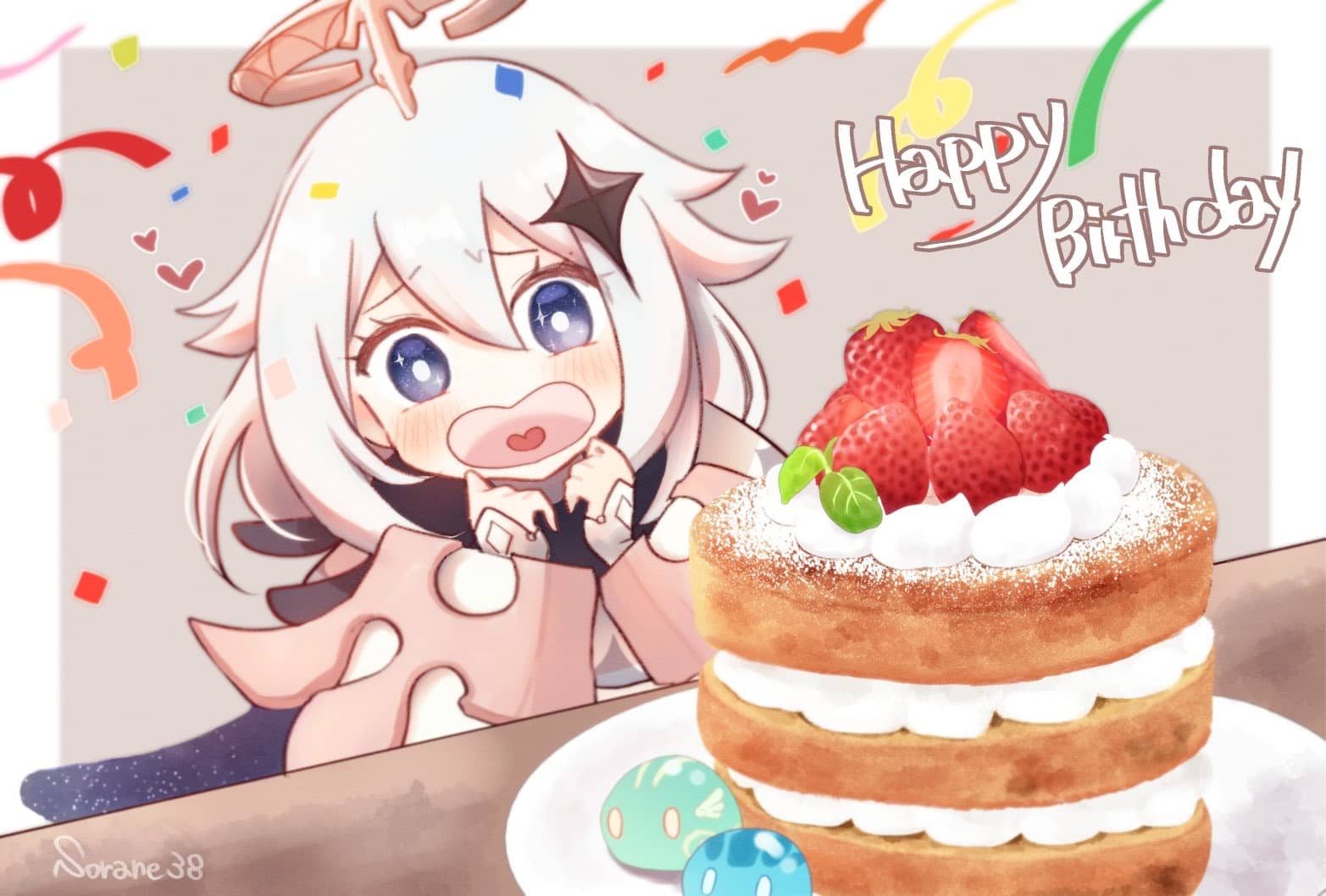 Hoy es el cumpleaños de Paimon >< ¡Por supuesto que un cumpleaños debe tener un pastel para pedir un deseo! He oído que Paimon tiene muchísimos deseos, ¡y el mayor es que siempre, siempre podamos vivir aventuras juntos!
