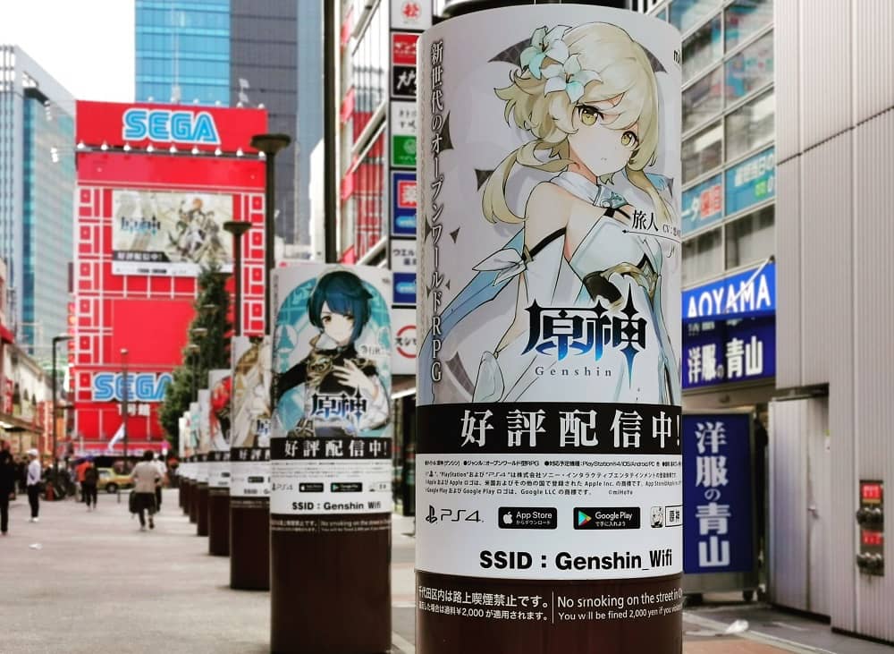 La influencia del popular videojuego Genshin Impactย continรบa creciendo a un ritmo alarmante a medida que los anuncios del juego gacha desarrollado en China se han exhibidoย en Akihabara y la estaciรณn JR Akihabara.