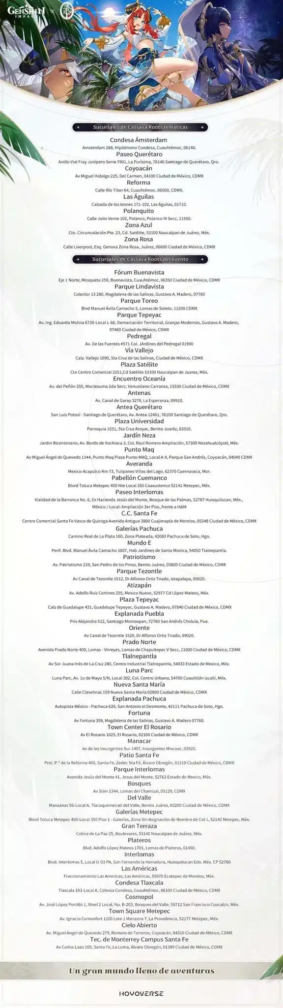 Hoy es un buen día para los fanáticos de Genshin Impact en México y es que el día de hoy ha dado comienzo la nueva colaboración de Genshin Impact con la cafetería Cassava Roots, donde todos los fanáticos que asistan a las diferentes sucursales podrán tener la oportunidad de adquirir increíbles obsequios inspirados en los personajes de Cyno, Nilou y Candace.