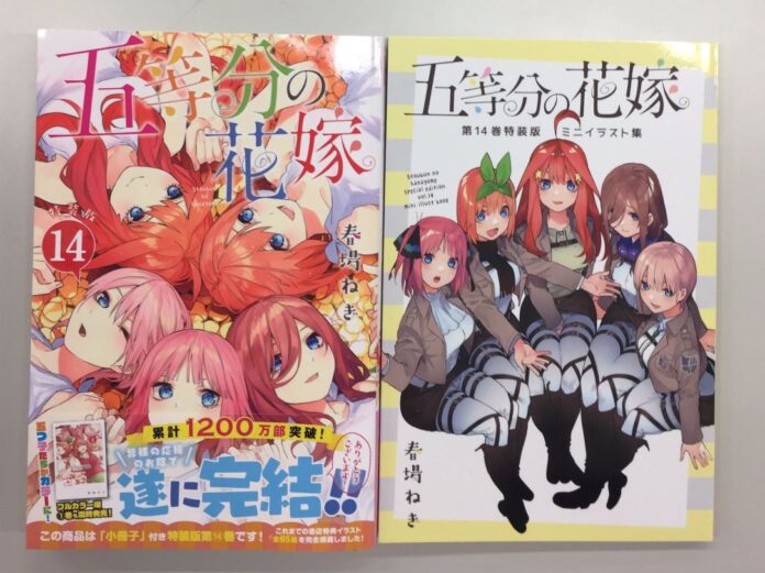 La cuenta de Twitter oficial para el manga Go-Toubun no Hanayome anunciรณ que el volumen 14 y final, ya estรก disponible a la venta en librerรญas en Japรณn, pero esta no fue la รบnica sorpresa.